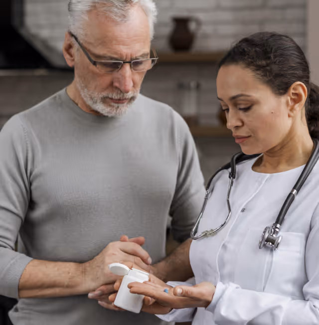 Our medication assistance covers timely reminders for each dose, pill organizer setup, refill tracking, documentation of doses taken or missed, observation for side effects, and coordination with physicians and pharmacists. We do not administer injections or perform clinical procedures, but we support the full range of daily oral medication routines.